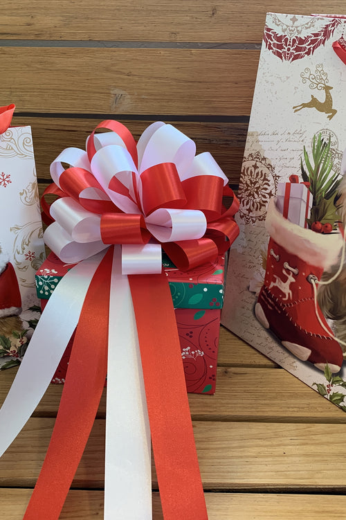 Pre-Tied Bow, Red and White, Door Decoration, Swag, Wreath, Garland, Boxing Day, Christmas Tree Ribbon, Winter Decoration, Front Door Decor Ribbon...