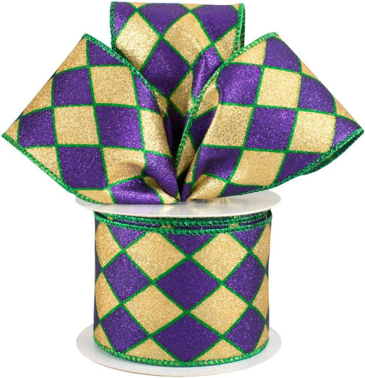 Purple & Gold Glitter Diamonds, Green Accents, Christmas, Easter, Mardi Gras, Holiday Garland, Gifts, Wreaths, Bows Ribbon for Gift Wrapping -...