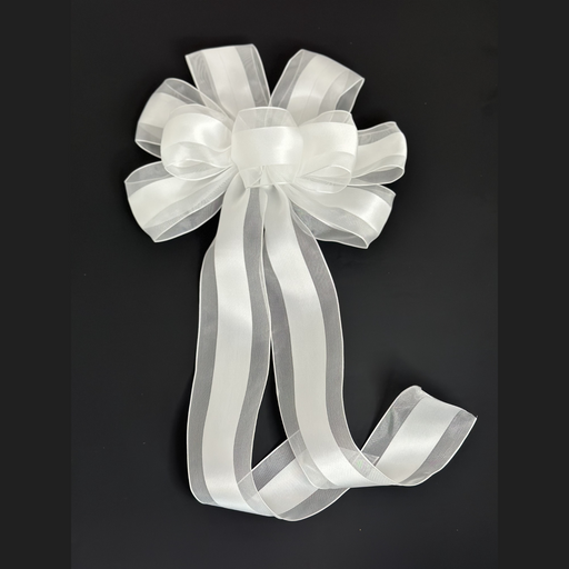Pre-Tied Bow, White Xmas Ribbon Tree Decor, Door Decoration, Swag, Wreath, Garland, Gift Bow, Swag Cute Christmas Tree Topper Bow - 10 inches wide...