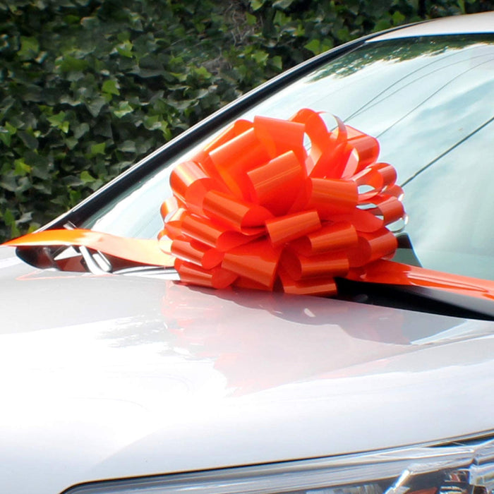 The 16" car bow is perfect for decorating cars, extra large gifts, in-store merchandise, grand openings, parties, theme events and more. Each bow comes with two 36" ribbon tails for additional decorating effect. Bows are shipped fully made and ready to use out of the box.
