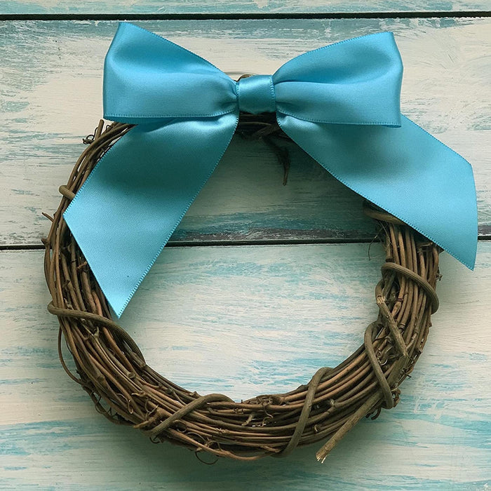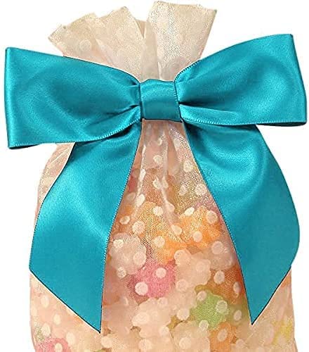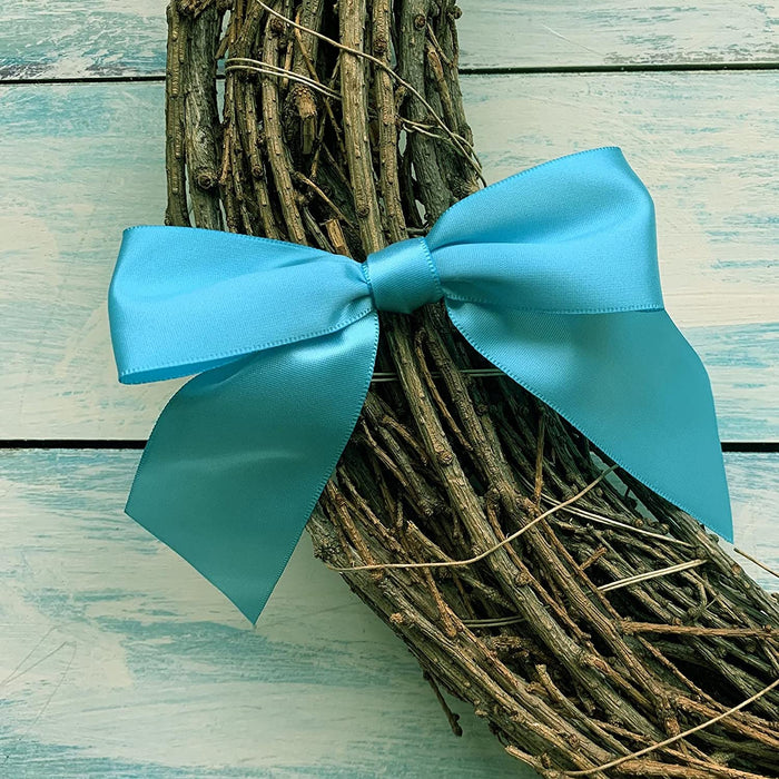 • Ribbon for Gift Wrapping - This set contains 12 Turquoise blue bows comprised of a 7/8" wide silky satin ribbon. Each bow arrives pre tied and ready for use with a bow 4 1/2" wide and hanging tails.