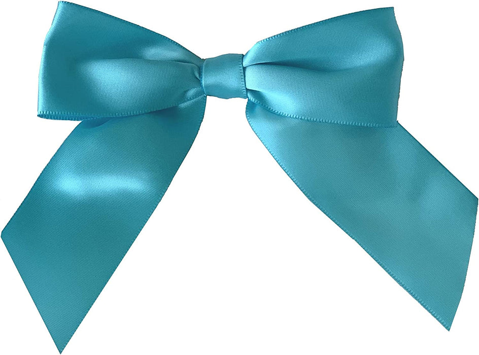 Pre-Tied Turquoise Blue Satin Bows - 4 1/2" Wide, Set of 12