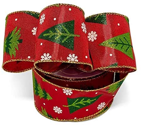 Bright Red Christmas Trees Ribbon - 2 1/2" x 10 Yards