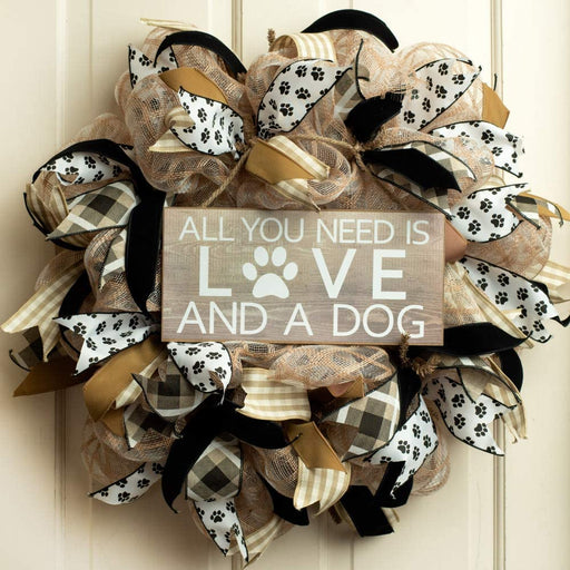 Rustic Wooden Decoration for Wreaths, Home, Kitchen, Yard, Front Door, Patio, Farmhouse Decor All You Need is Love and a Dog sign in bold white pr...
