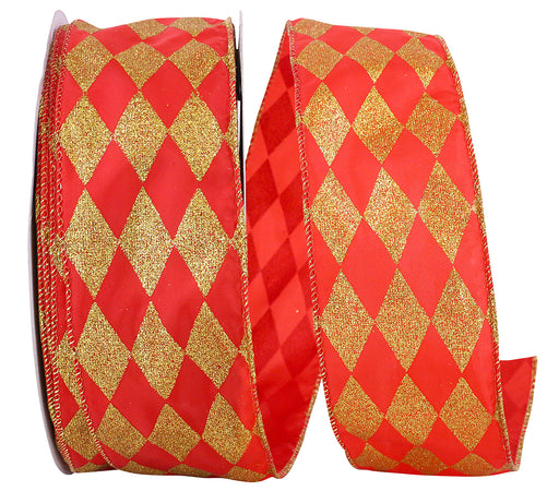 Harlequin, Gold Glitter, Christmas Tree Ribbon, Wreath, Gift Wrap, Store Front, Indoor Display, Valentine's Day, Mardi Gras Ribbon for Gift Wrap...