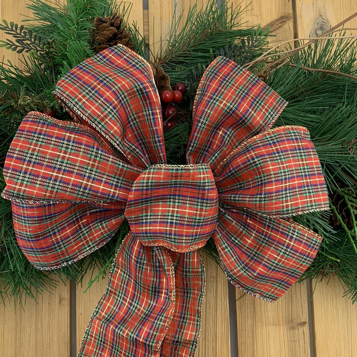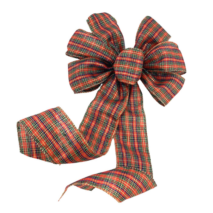 Christmas Tartan Ribbon Wreath Bow - 10" Wide, 18" Long