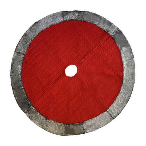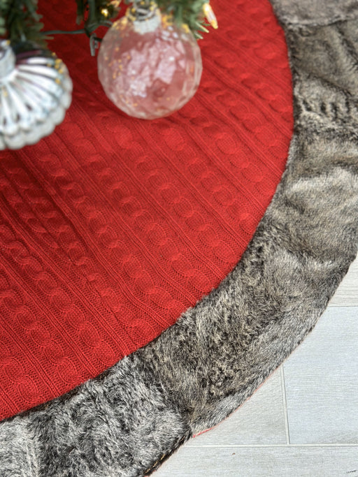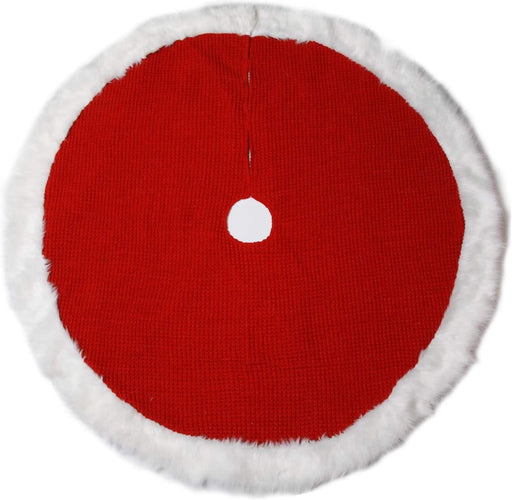 White Trim, Faux Fur, Soft, Thick, Heavy Yarn, Presents, Gifts, Winter Holiday, Decoration, Boxing Day Large Classic Red Knit Christmas Tree Skirt...