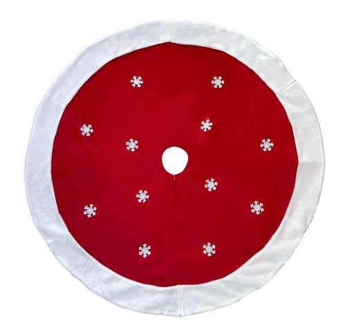 Red Felt Center, White Faux Fur Trim, Presents, Gifts, Bright Red Christmas Decoration Large Rustic Red Felt Christmas Tree Skirt - 48 Inch Wide (...