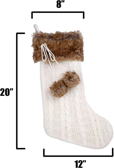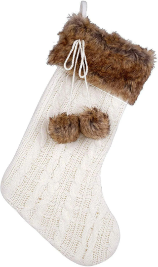 Soft, Knitted Boot, Attached Hanging Loop, Decoration, Gifts, Presents Classic Snow White Christmas Stocking with Faux Fur Cuff and Pompoms - 20 i...