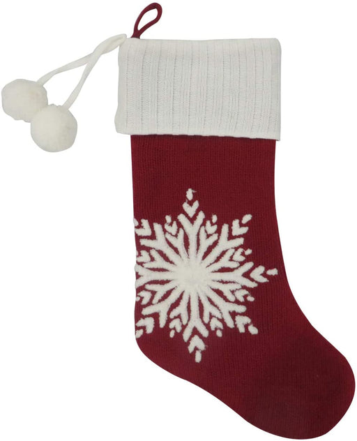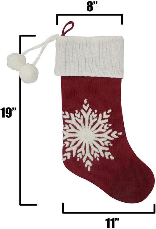 Classic Red and White Christmas Stocking with a Red Boot and White Knit Top and Pompoms - 19 inch long by 8 inch wide and 3 inch deep - Snowfla...