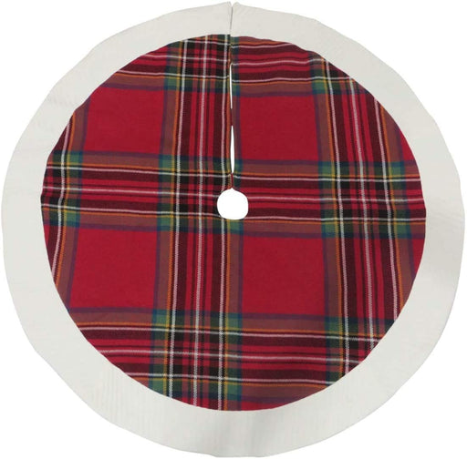 Christmas Plaid with White Trim, Tree Decoration, Boxing Day Large Rustic Tartan Christmas Tree Skirt - 48 Inch Wide (4 Feet) Diameter Vintag...