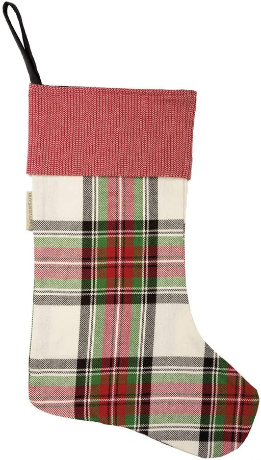 Double Sided, Gifts, Presents, Stocking Stuffers, Attached Hanging Loop, Farmhouse Chic Decor Rustic Beige, Red and Green Tartan Christmas Stockin...
