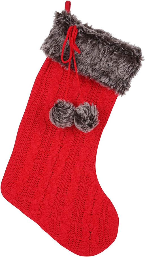 Fluffy Pompoms, Soft, Knitted Boot, Boxing Day, Gifts, Presents, Decoration Classic Red Christmas Stocking with Faux Fur Cuff and Pompoms - 20 inc...