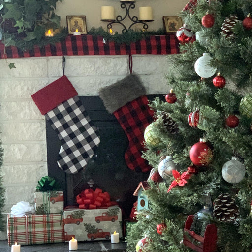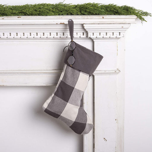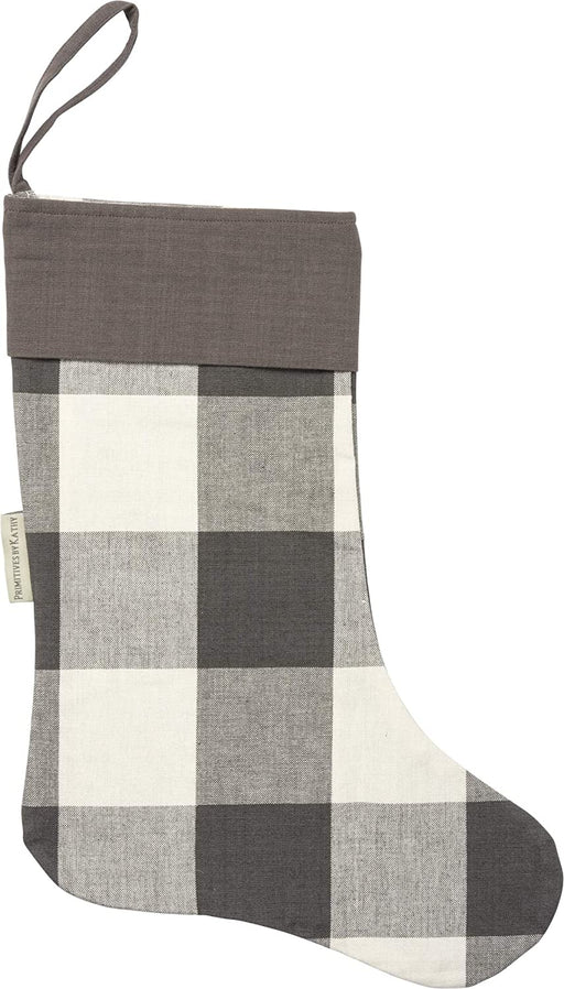 Double Sided, Gifts, Presents, Stocking Stuffers, Attached Hanging Loop, Farmhouse Chic Decor Rustic Gray and Beige Buffalo Plaid Christmas Stocki...