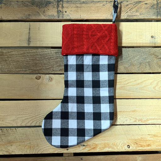 Red Knit Cuff, Black and White Checks, Double Sided, Gifts, Presents, Stocking Stuffers, Attached Hanging Loop, Farmhouse Chic Decor Modern White ...