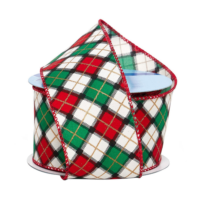 Christmas Argyle Diamonds Wired Ribbon - 2 1/2" x 10 Yards