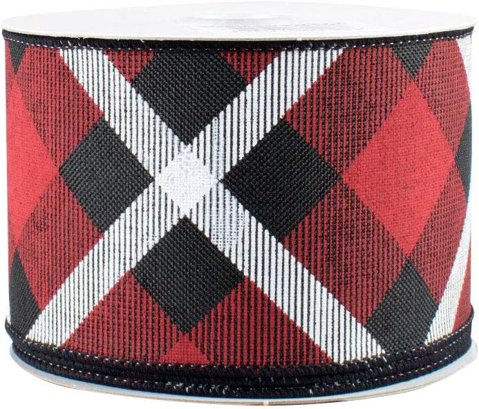- Ribbon for Gift Wrapping - Diagonal Plaid ribbon with wire edges in a roll 2.5 inch wide by 10 yds for all your holiday craft and Christmas Decorations