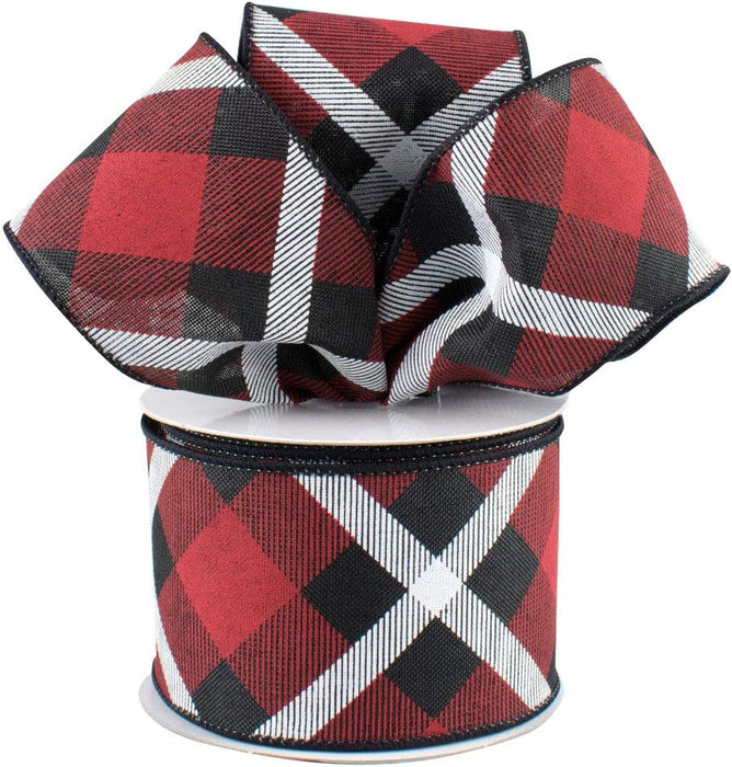 Diagonal Plaid Wired Christmas Ribbon - 2 1/2 inch x 10 Yards