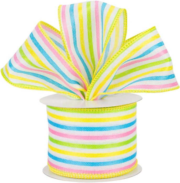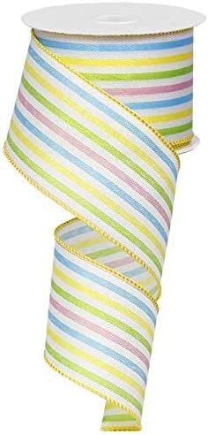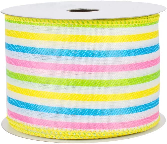 - Ribbon for Gift Wrapping - Spring Pastels Stripes Wire Ribbon Roll 2.5 inch by 10 yards for all your DIY and crafting needs