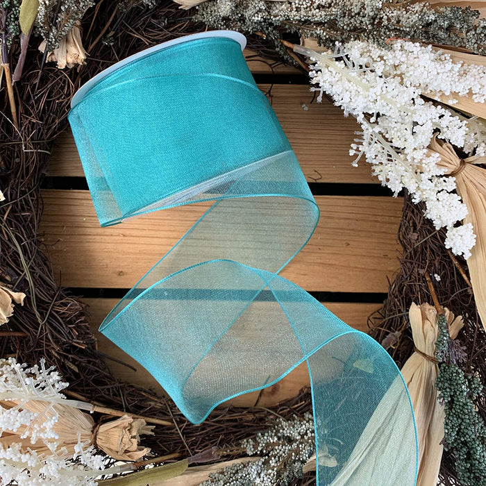 • Sheer Turquoise Wired Edge Ribbon - Perfect for Weddings, Receptions, Easter, School Dances, Christmas and all your party decorating needs