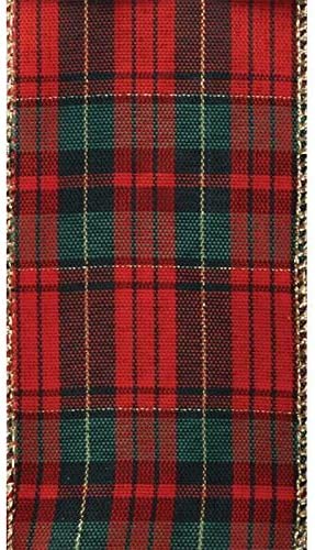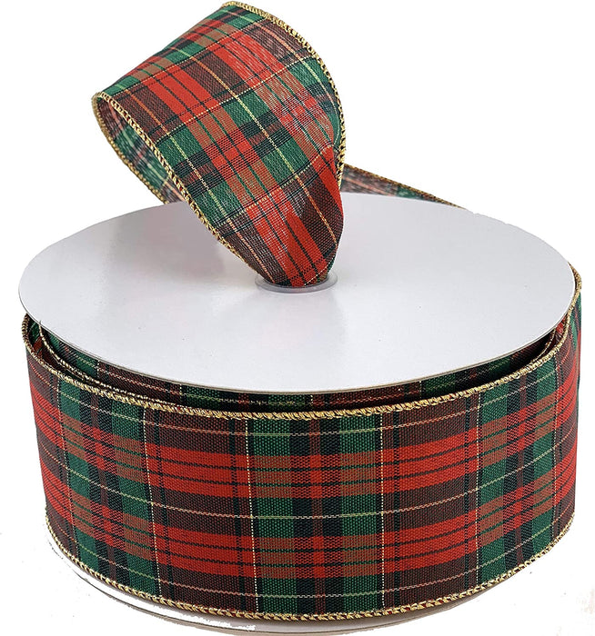 Holiday Wired Christmas Tree Ribbon - 2-1/2" x 10Y, Classic Red Green Gold Trim Plaid