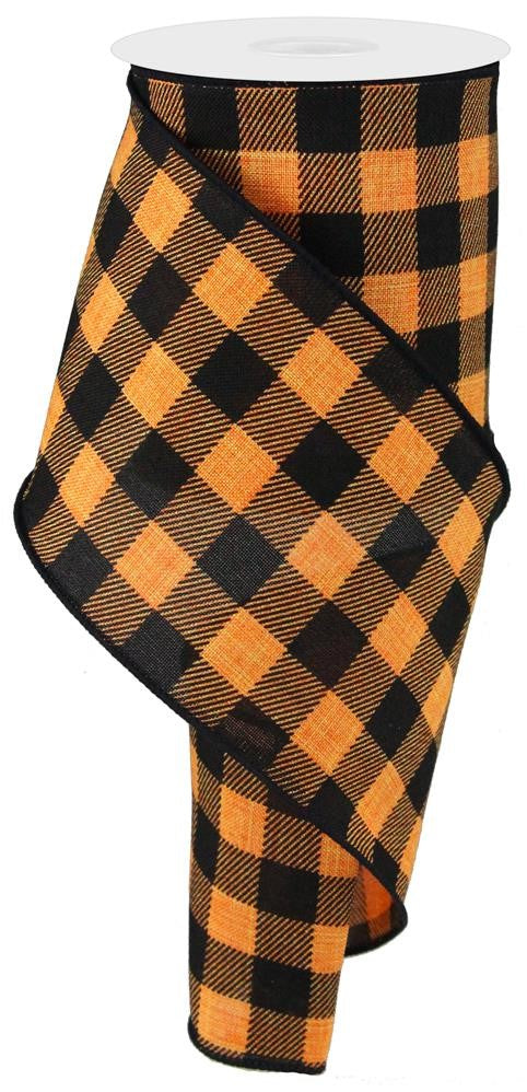 Orange, Black & Yellow Plaid, Fall, Thanksgiving, Christmas, Spring, Wreath, Swag, Garland, Ribbon for Gift Wrapping - Orange, Black and Yel...