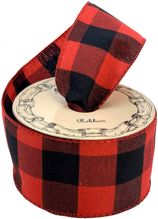 Christmas, Buffalo Check Plaid, Wreath, Decoration, Garlands, Trees, Bows, Birthday, Thanksgiving, Valentine's Day Ribbon for Gift Wrapping - Buff...