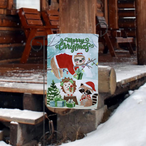 Double Sided, Sloth, Porcupine, Raccoon, Presents, Home Decor, Christmas Decoration, Boxing Day, Classroom, Daycare, Yard Flag, Christmas Tree Lot ...