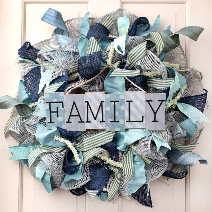 • "FAMILY" is in capitalized bold black lettering on 1/4 " thick wood with a thick jute rope string for hanging inside and out - Pairs great with colorful deco mesh and vibrant colored ribbon!