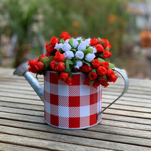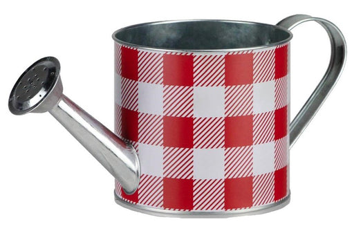 Galvanized Metal, Indoor Plant, Home Decor, Garden Decor, Christmas Festive Indoor Watering Can with a Red and White Buffalo Plaid Print with a di...