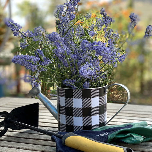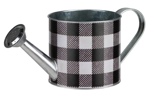Galvanized Metal, Indoor Plant, Home Decor, Garden Decor, Christmas Festive Indoor Watering Can with a White and Black Buffalo Plaid Print with a ...
