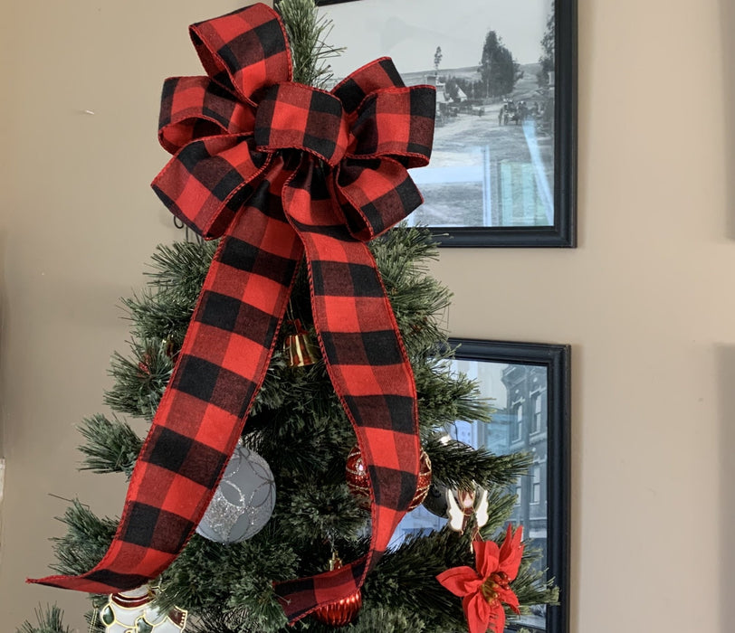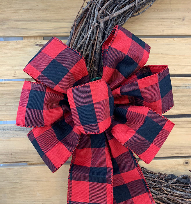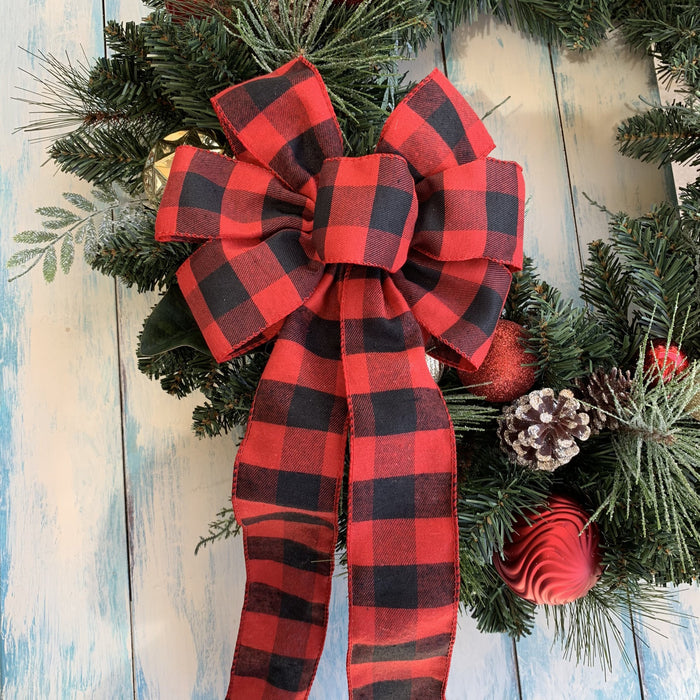 Buffalo Plaid Christmas Wreath Bow - 10" Wide, 18" Long