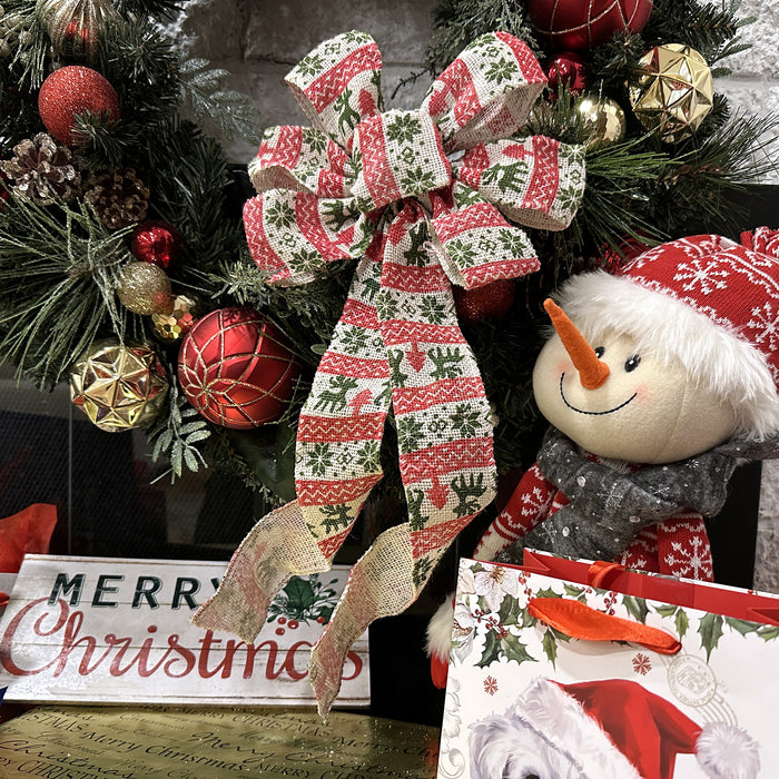 Pre-Tied Bow, Red and Green, Nordic Pattern, Door Decor, Swag, Wreath, Garland, Boxing Day, Christmas Tree Ribbon, Winter Decor