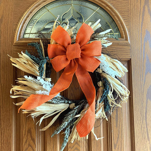 Easter, Spring, Front Door Decor, Fall, Halloween, Thanksgiving, Christmas, Farmhouse Ribbon for Gift Wrapping - Rustic Orange Burlap Ribbon Chris...