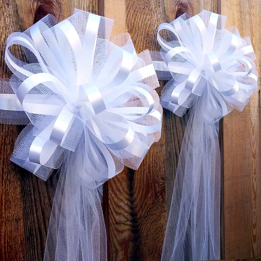Pre-Tied Bow, White Xmas Ribbon Tree Decor, Door Decoration, Swag, Wreath, Garland, Gift Bow, Swag Cute Christmas Tree Topper Bow - 10 inches wide...