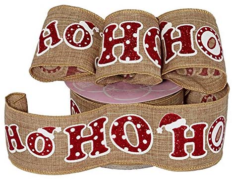 Faux Burlap, Red Glitter Text, Gift Wrapping, Wreath Decoration, Garland, Tree Topper Bow, Boxing Day Ribbon for Gift Wrapping - Holiday Wired Chr...