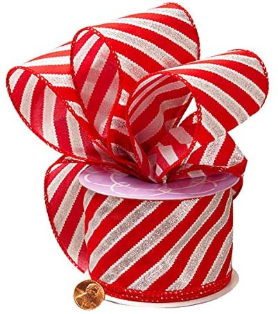 Christmas Tree Ribbon, Gift Basket, Wreath, Swag, Garland, Boxing Day, New Year's Eve, Anniversary Ribbon for Gift Wrapping - Christmas Striped ri...