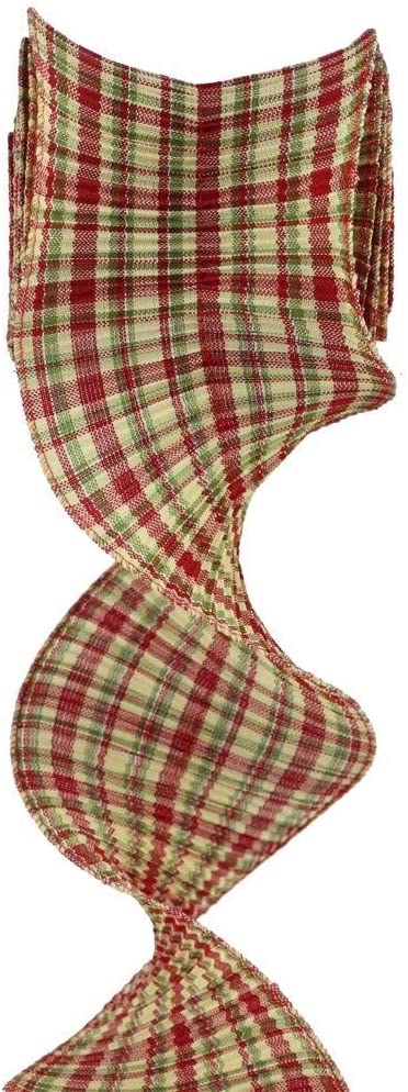 Green Black Red Beige Plaid Wired Christmas Ribbon - 2 1/2" x 10 Yards, Red Wired Edge, Wreath Decor, Garland, Gifts, Wrapping, Bows, Presents, Chr...