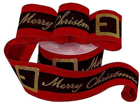 Vibrant Red, Gold Glitter Buckle and Merry Christmas, Gift Wrapping, Wreath Decoration, Garland, Tree Topper Bow Ribbon for Gift Wrapping - Holid...