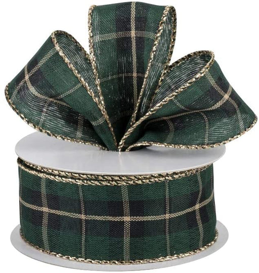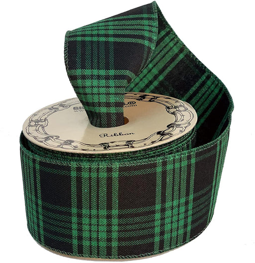 Green Black Red Beige Plaid Wired Christmas Ribbon - 2 1/2" x 10 Yards, Red Wired Edge, Wreath Decor, Garland, Gifts, Wrapping, Bows, Presents, Chr...