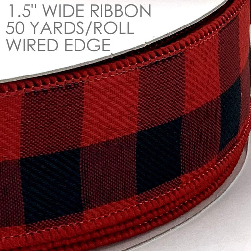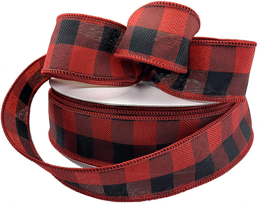 Black & Red Buffalo Plaid, Wired Edge, Wreath, Farmhouse Decor, Garland, Gift Wrap, Wreath, Bows, Fundraiser Ribbon for Gift Wrapping - Red an...