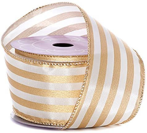 Reception, Christmas, Vintage Ribbons for Crafts, Centerpieces, Vase, Bouquet, Streamers, Bows White Gold Striped Satin Ribbon - Perfect for Wedd...