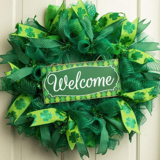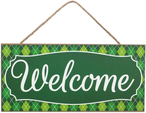 Hanging Front Door Décor, St. Patrick's Day, Spring, Mardi Gras Decorations, Patio, Porch Vibrant Green and White Argyle painted Wooden sign with ...