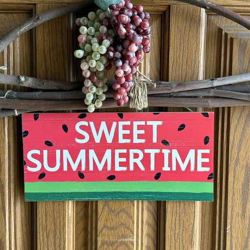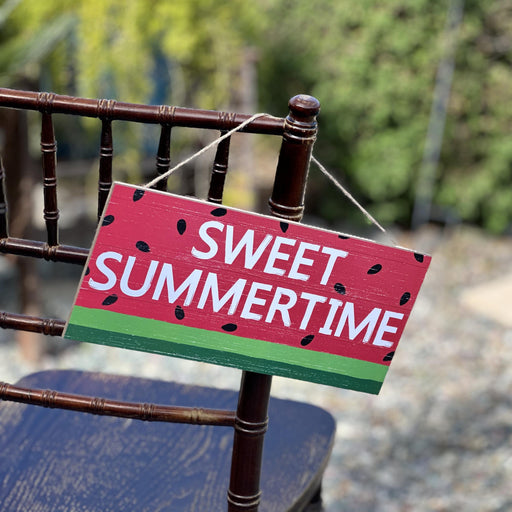 Easter, Spring, 4th of July, Summer Decorations, Patio, School, Porch, Summer Camp A Bright Pink and Green Watermelon sits in front of a White and...