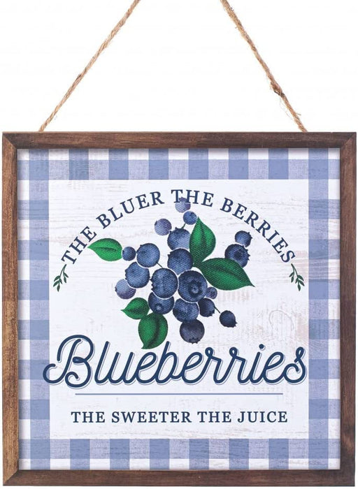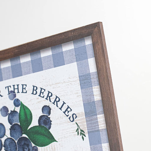 Blueberries, Plaid, Spring Wreath, Kitchen Dining Room, Diner, Home, Patio, Door, Storefront, Porch, Garden A faux frame and Blue and White Gingha...