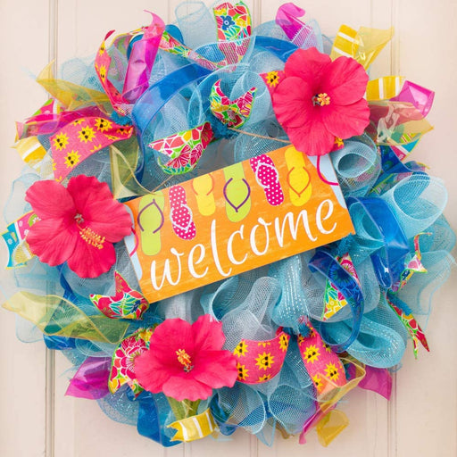 Beach House Chic, Sandals, Porch, Patio, Front Door Decor, Easter, Wreath, Home Decor, Surf Shop, Boardwalk Store Colorful flip flops in Blue, Pin...