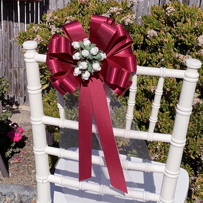 - Beautiful 8” diameter pull bows that add a tasteful touch to your wedding décor for a fraction of the cost of traditional florist pew bows