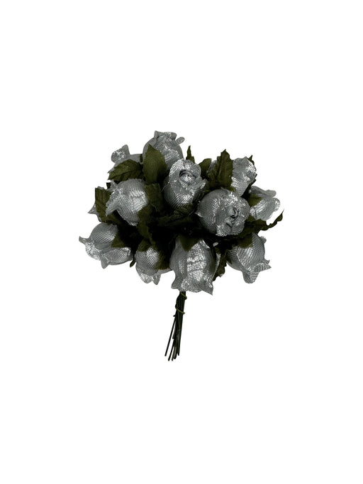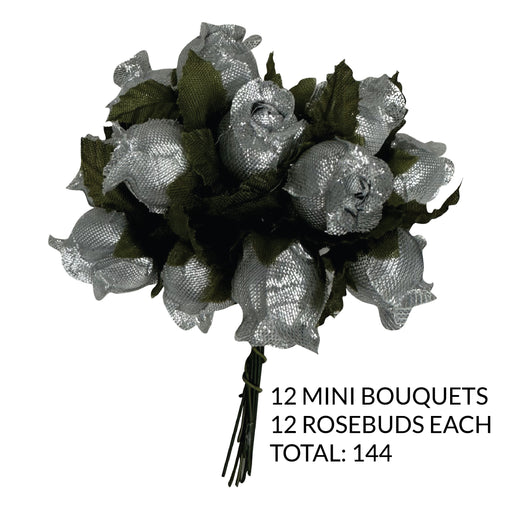 Wedding, Reception, Anniversary, Favors, Wreath, Bridal Shower Decorations, DIY, Arts and Crafts 12 faux silk polyester Silver Rosebud mini ...