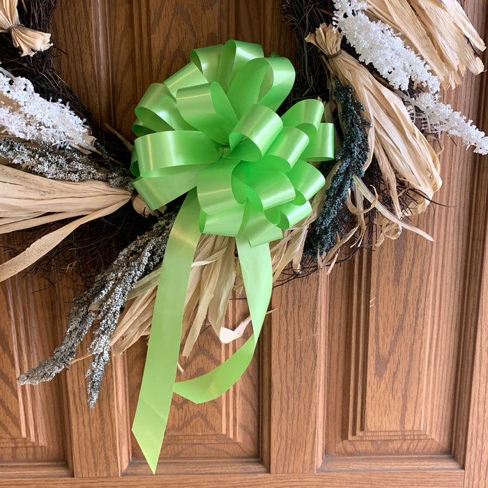 6 Apple Green 8" Pull Bows - Easter Gift Basket, Wedding., Wreath Ribbon, Party Decorations