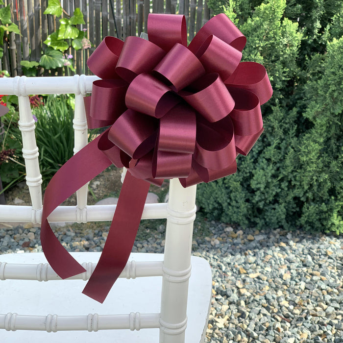 - Beautiful burgundy pull bows will add a tasteful touch to your wedding décor, or any other special day, gift, or event.